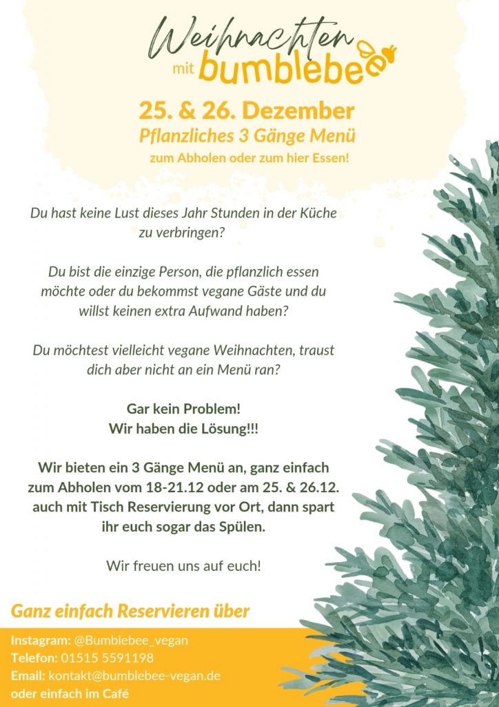 Wenn du Fragen hast, einen Tisch reservieren oder ein Mittagsessen vorbestellen möchtest, eine Veranstaltung organisierst, bei der du Bumblebee gerne als Catering dabei hättest oder noch eine ganz andere Idee hast: